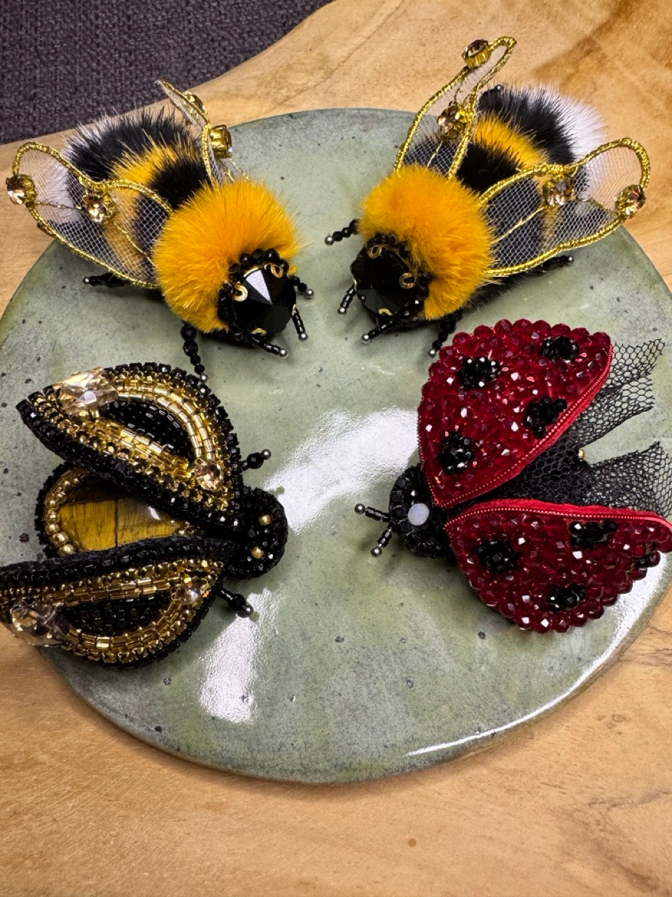 All brooches are hand embroidered using threads, beads, crystals and metal wires.